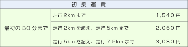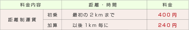 距離制運賃の起算点とし、2Km未満の回送料は収受しない。