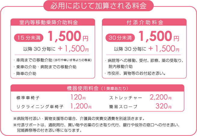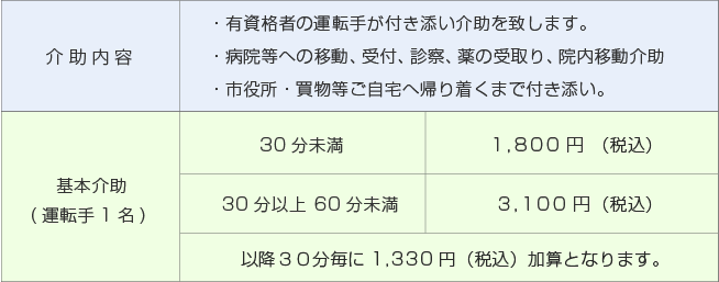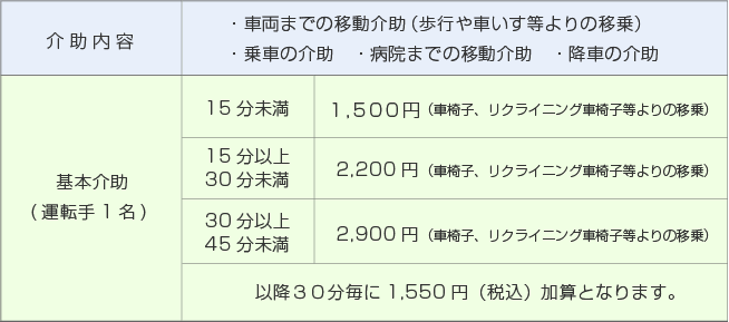 ※介護運賃でのご利用は、要介護認定の方で、ケアマネジャーが作成するケアプランに基づき、訪問介護サービスとして行う輸送に限りご利用できます。